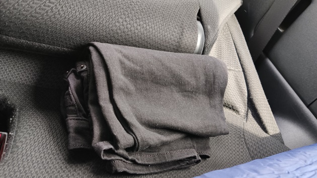 スキニーパンツ!車中泊する場合でも、洋服持ってきますよね?